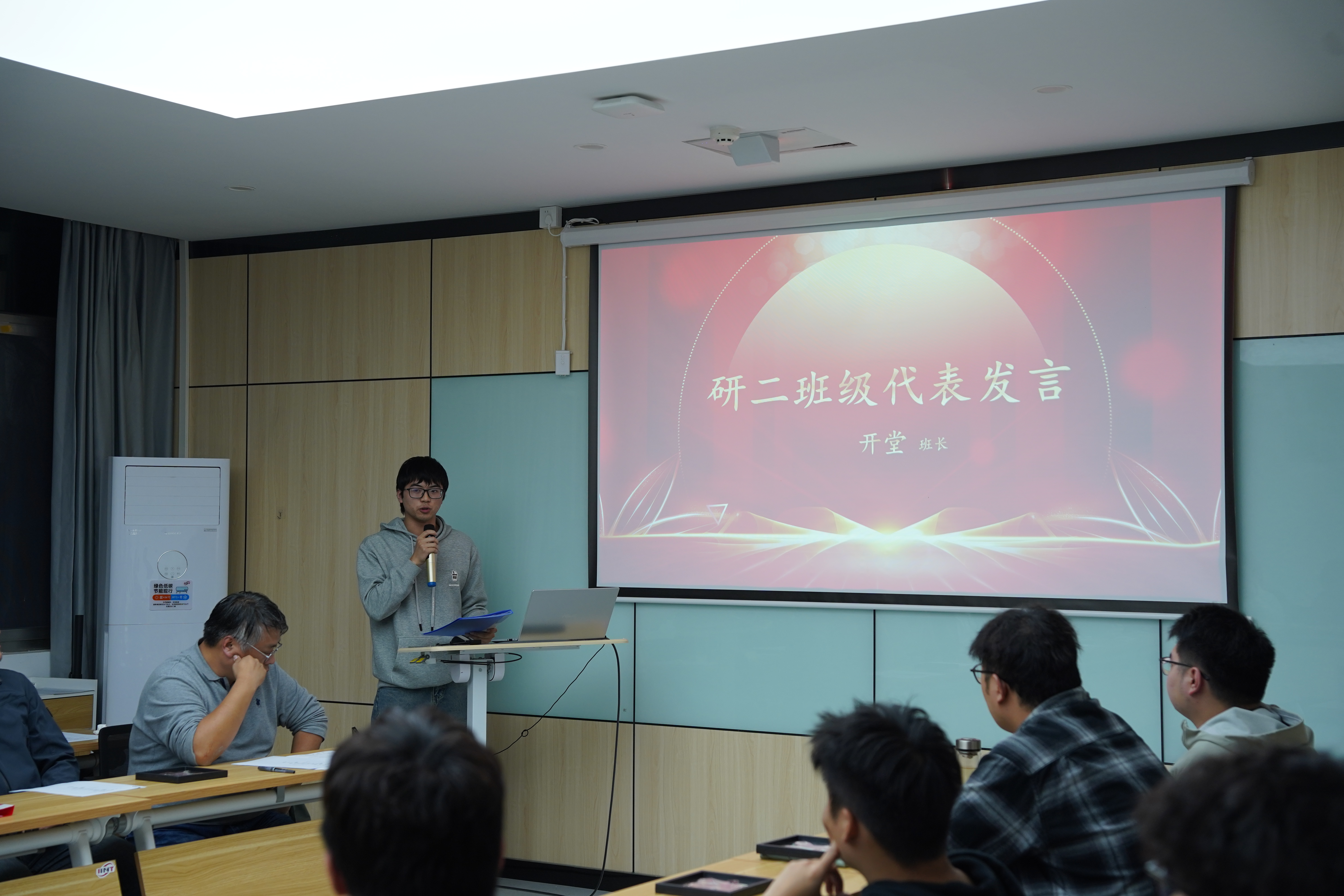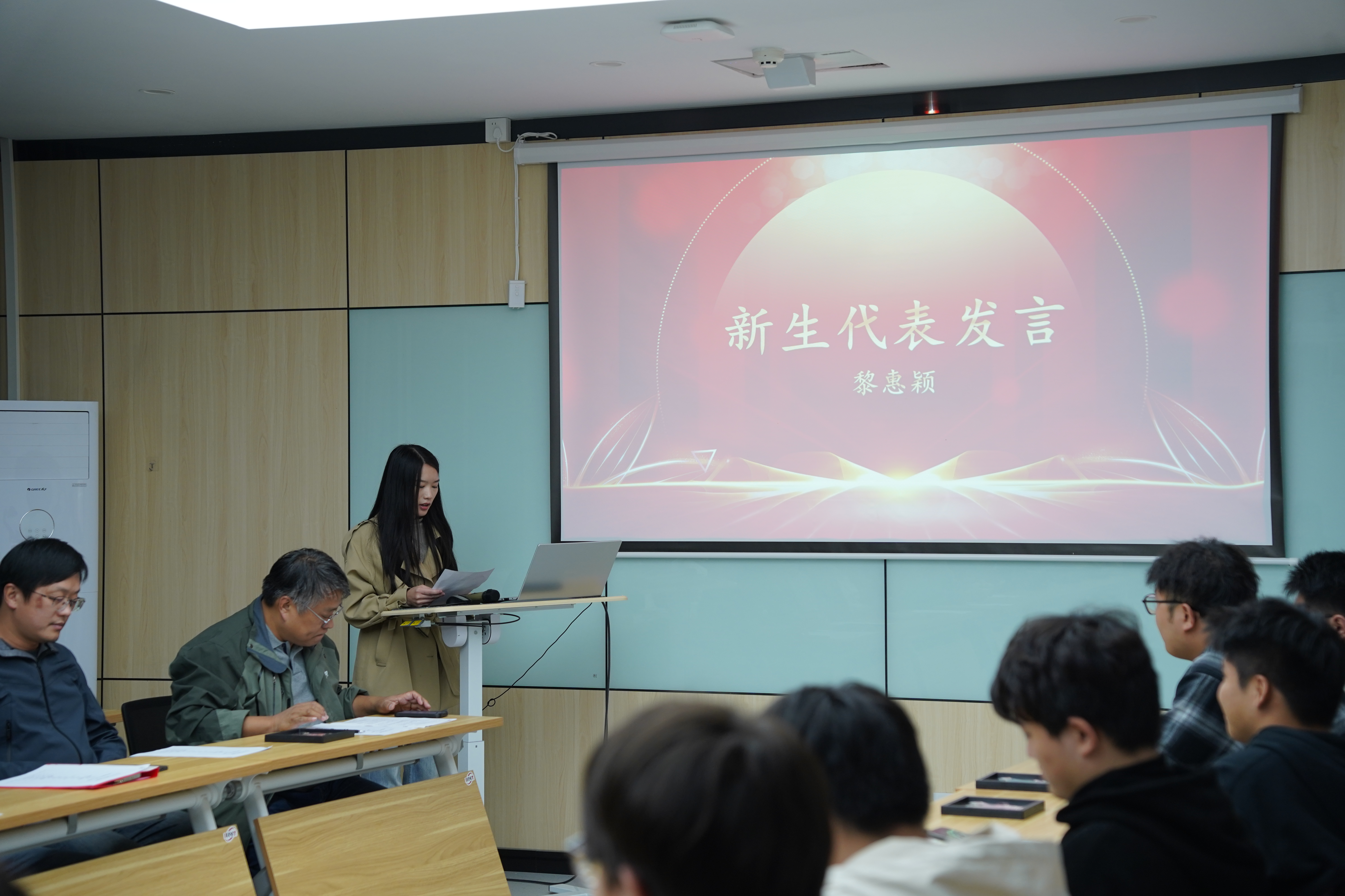 24级核心团支部学生干部代表开堂向2025级新生致以诚挚欢迎。他结合自身科研实践,深情寄语新生:科研探索绝非孤军奋战,课题组内的紧密协作与相互支撑,是攻克难关、孕育创新的关键力量,期待大家以团队为舟,在互助共进中碰撞思维火花,合力产出高质量科研成果;面对科研路上的未知挑战,更要永葆乐观向上的进取心态,以步步为营的扎实作风迎难而上,在实现个人成长的同时,与团队携手攀登学术高峰,共同书写属于这一代的科研篇章。