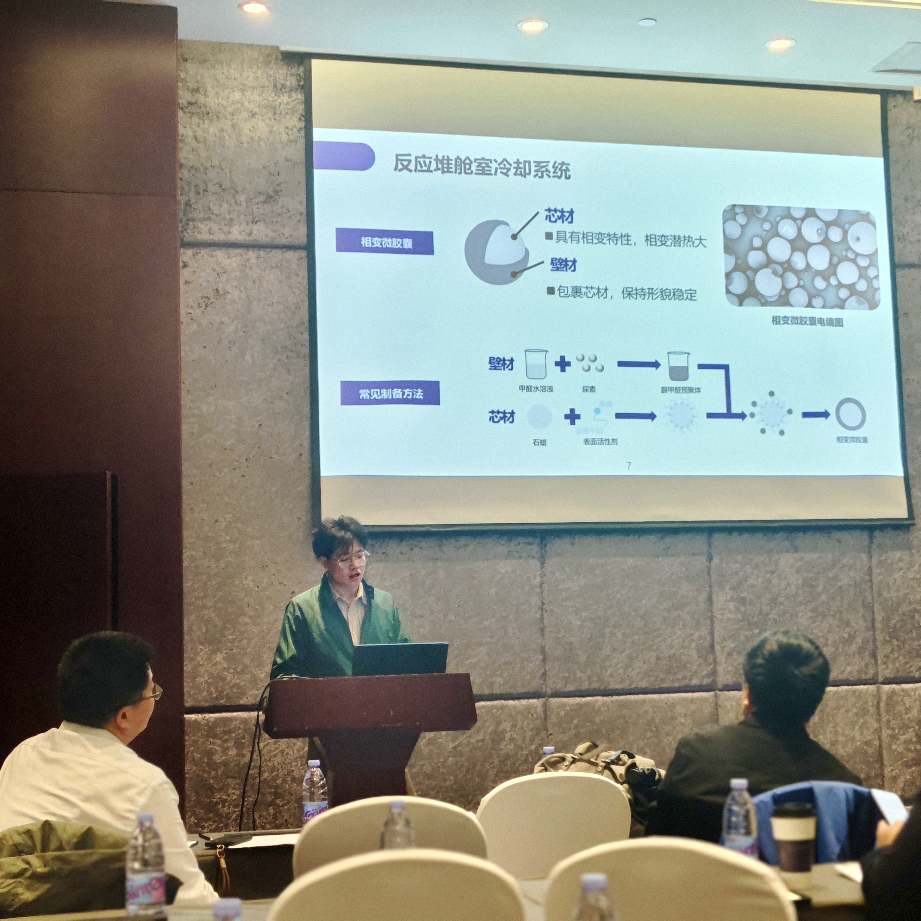 IINT课题组博士生杨思参加了此次会议并做学术报告。报告题目为:“面向反应堆舱室冷却系统的相变微胶囊辐射-对流-相变耦合传热研究”。报告重点介绍了团队在新型反应堆舱室冷却系统设计及含相变微胶囊的固液两相流耦合传热的研究成果,引起与会专家的高度关注。