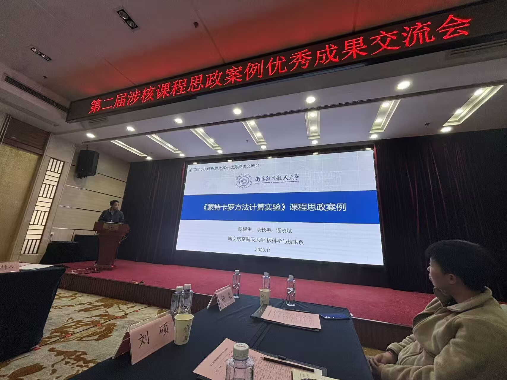 中国核工业教育学会、清华大学、西安交通大学、海军工程大学和南京航空航天大学等二十余家单位代表参加课程思政案例交流会,会议由西安交通大学张大林教授主持,8项获得一等奖的优秀课程思政案例进行分享汇报。IINT课题组钱根生老师代表团队进行2项课程思政案例分享,分别为《先进同位素技术及应用》课程思政案例(许志恒、陈飞达、汤晓斌)、《蒙特卡罗方法计算实验》课程思政案例(钱根生、耿长冉、汤晓斌)。与会专家对案例成效表示肯定,就案例中的教学方法、思政元素设计与效果评价等方面问题进行充分交流。