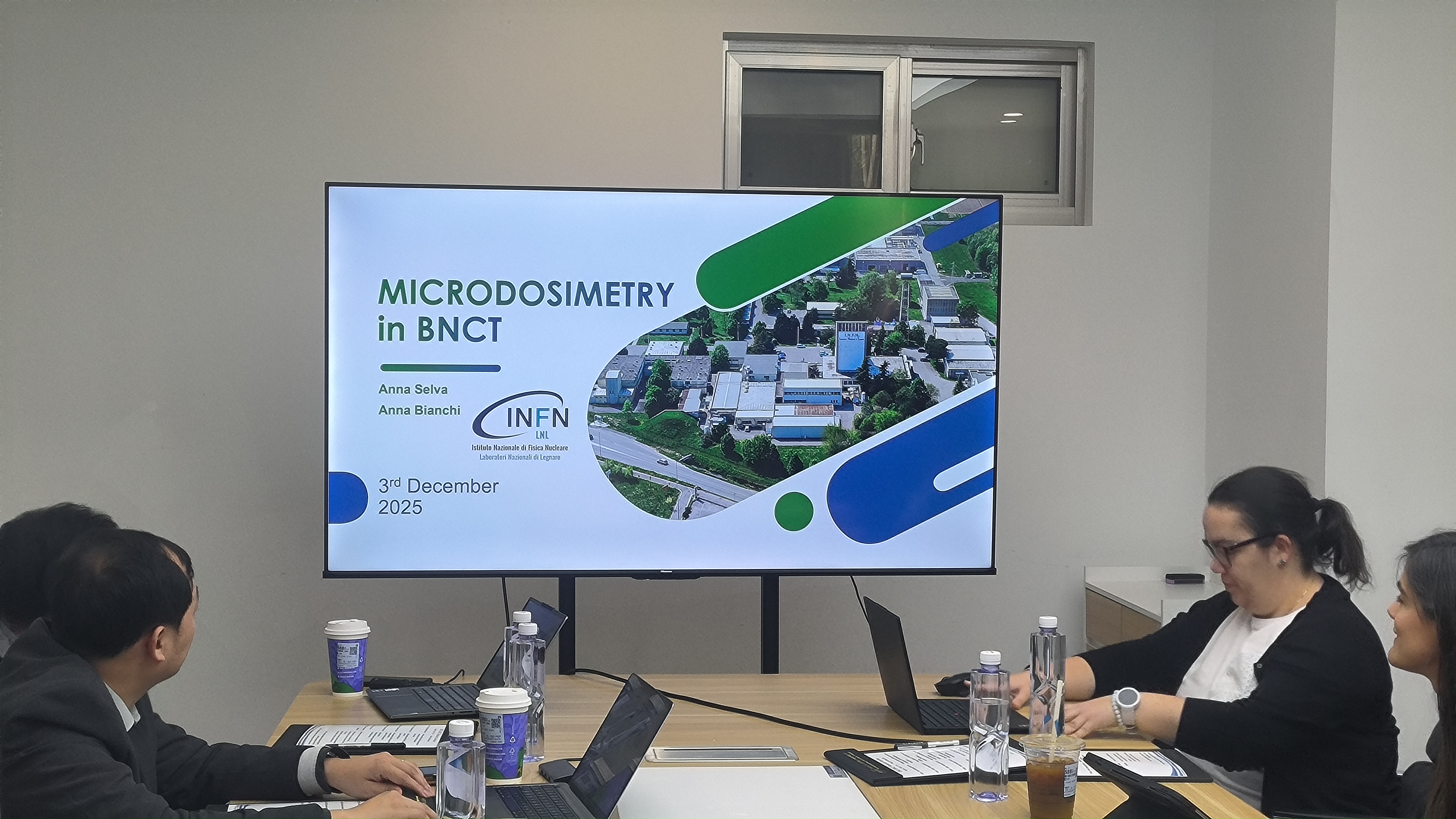 2025年12月3日,受IINT课题组邀请,意大利国家核物理研究院(INFN)Anna Bianchi研究员、Anna Selva研究员以及帕维亚大学Ian Postuma研究员、Maria Demichelis研究员、Cristina Pezzi博士等一行来校参加“中-意硼中子俘获治疗(BNCT)学术研讨会”。本次学术研讨会围绕硼中子俘获治疗关键技术与未来科研合作展开深入交流。IINT课题组耿长冉教授、钱根生讲师以及博士生顾少娴等师生代表参加了本次研讨会。