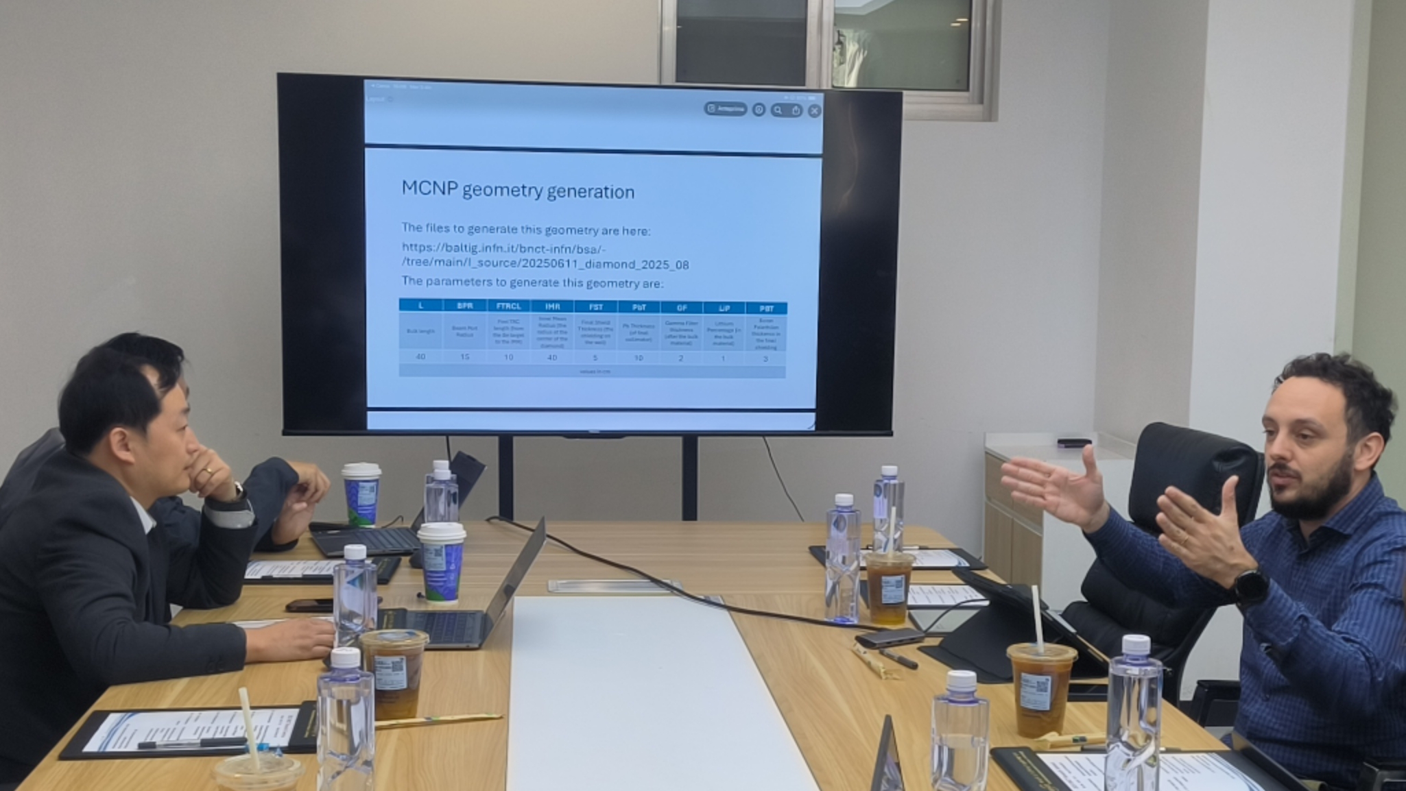 随后,耿长冉教授向意大利专家介绍了南京航空航天大学在BNCT领域的研究成果,并就目前双方所研究方向的未来合作内容展开了讨论与交流,双方均感收获颇多。这次会议不仅推进了双方在BNCT领域的深度对接,也为后续联合实验、人才互访和项目共建奠定了更为坚实的基石。