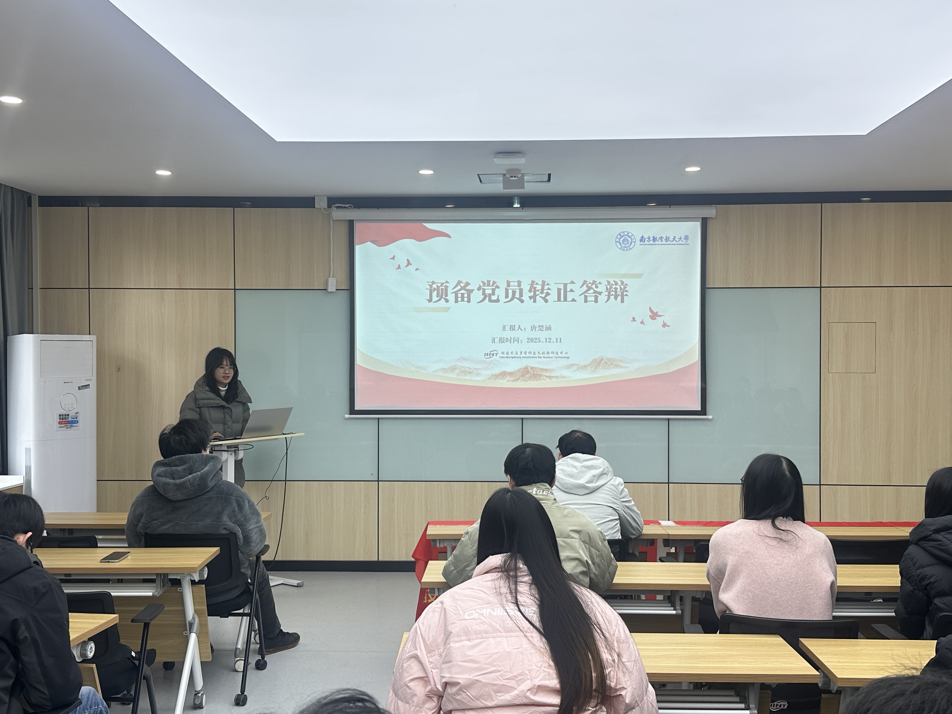 大会在庄严的国歌声中拉开序幕。全体参会人员肃立齐唱,铿锵旋律激荡初心使命。第一项议程聚焦预备党员转正工作。唐楚涵、彭嘉宇两位同志依次宣读转正申请,结合一年预备期的思想动态、学习实践与模范发挥,详实汇报自身成长与不足。其入党介绍人分别对二位同志预备期表现予以客观评价,充分肯定他们政治站位的提升、服务意识的增强、模范作用的显现,同时提出中肯期望。支部书记赵浠君同志对两位同志的审查情况作报告,认为两位同志已具备正式党员条件。