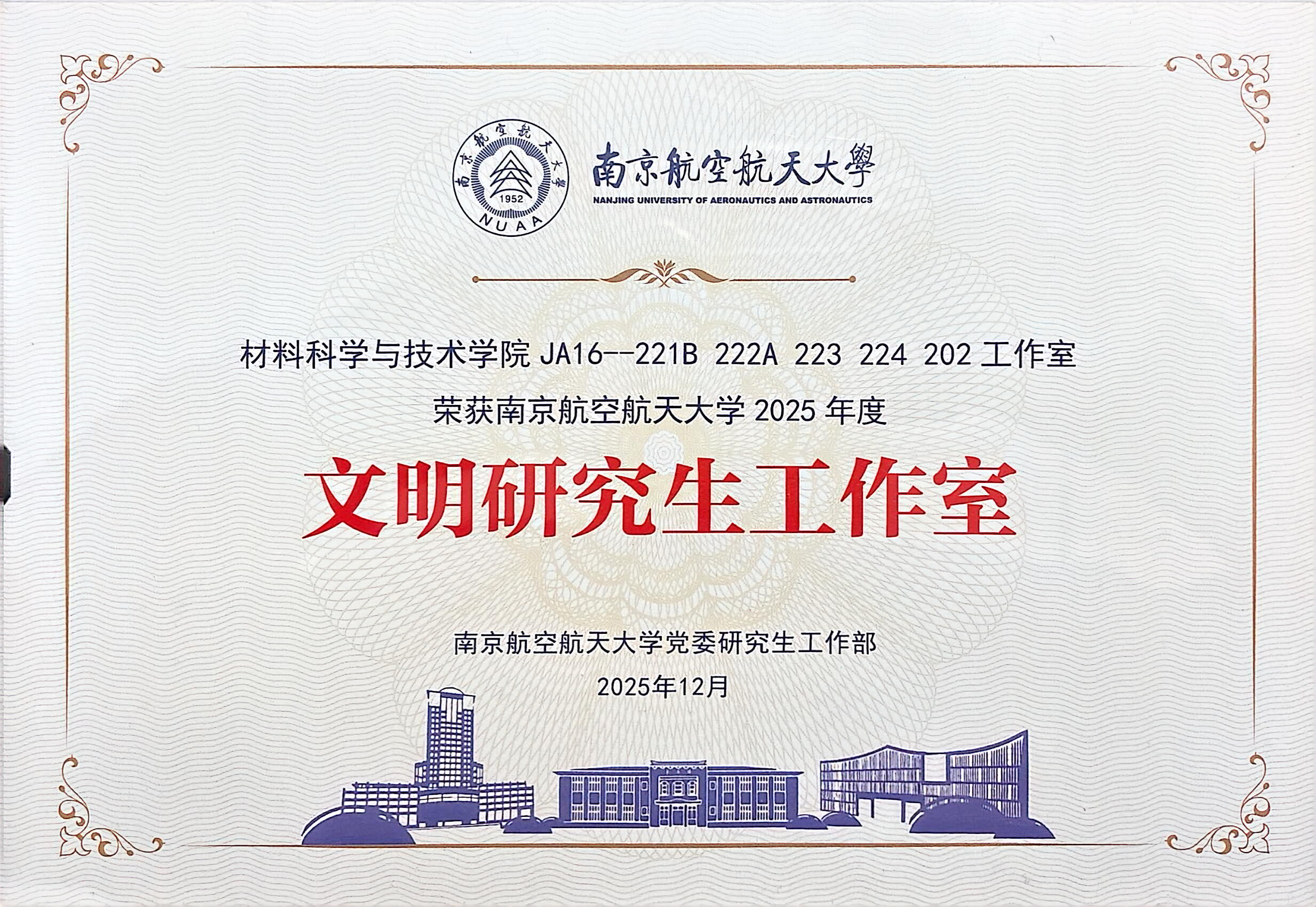 2025年12月4日,校研究生院公布了2025年度校级“文明研究生工作室”评选结果。IINT课题组研究生工作室再次荣获“文明研究生工作室”称号。这是课题组自2021年以来连续第五年获此殊荣,充分展现了团队在科研环境、文化建设和学生培养方面的卓越表现。