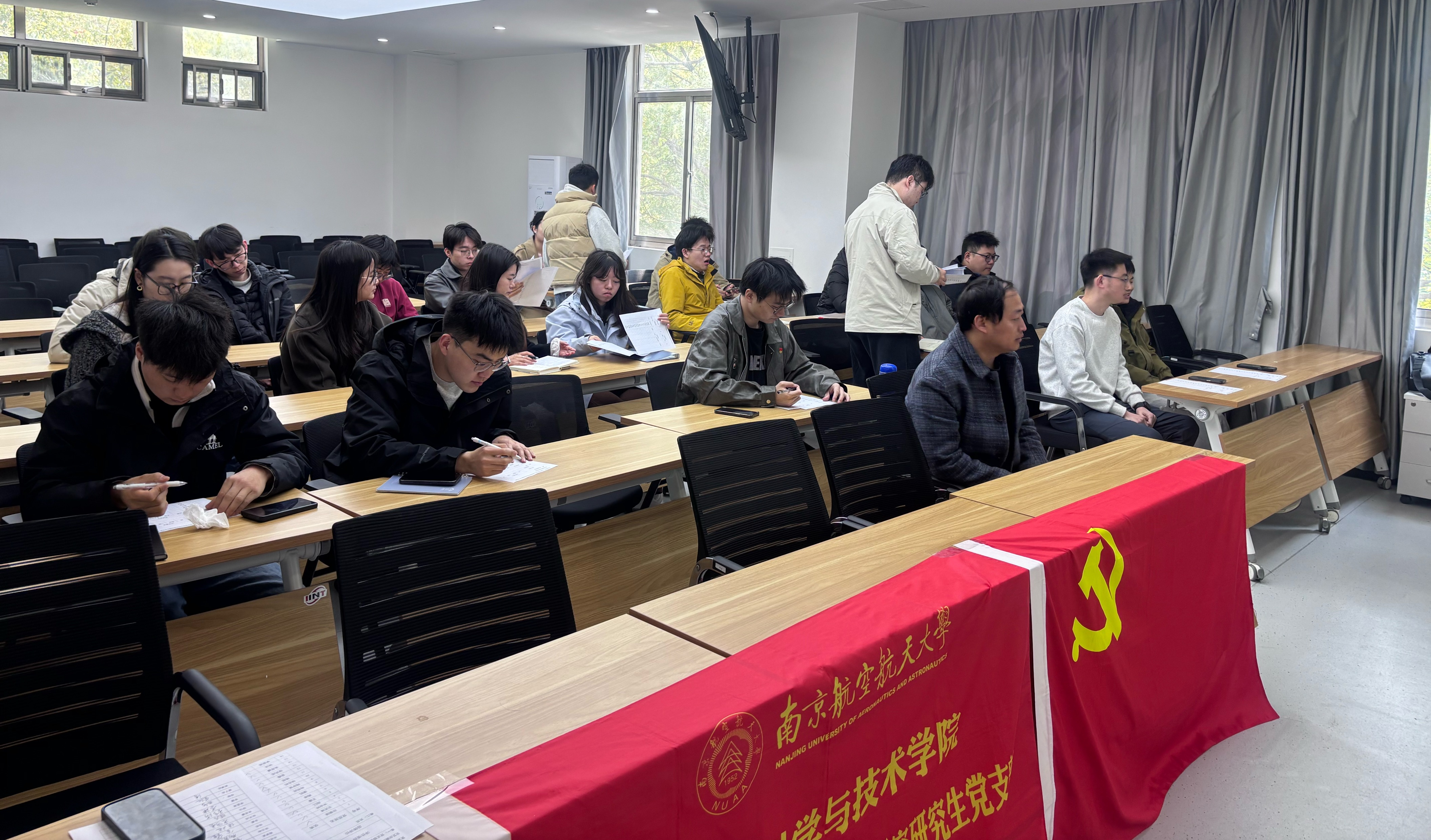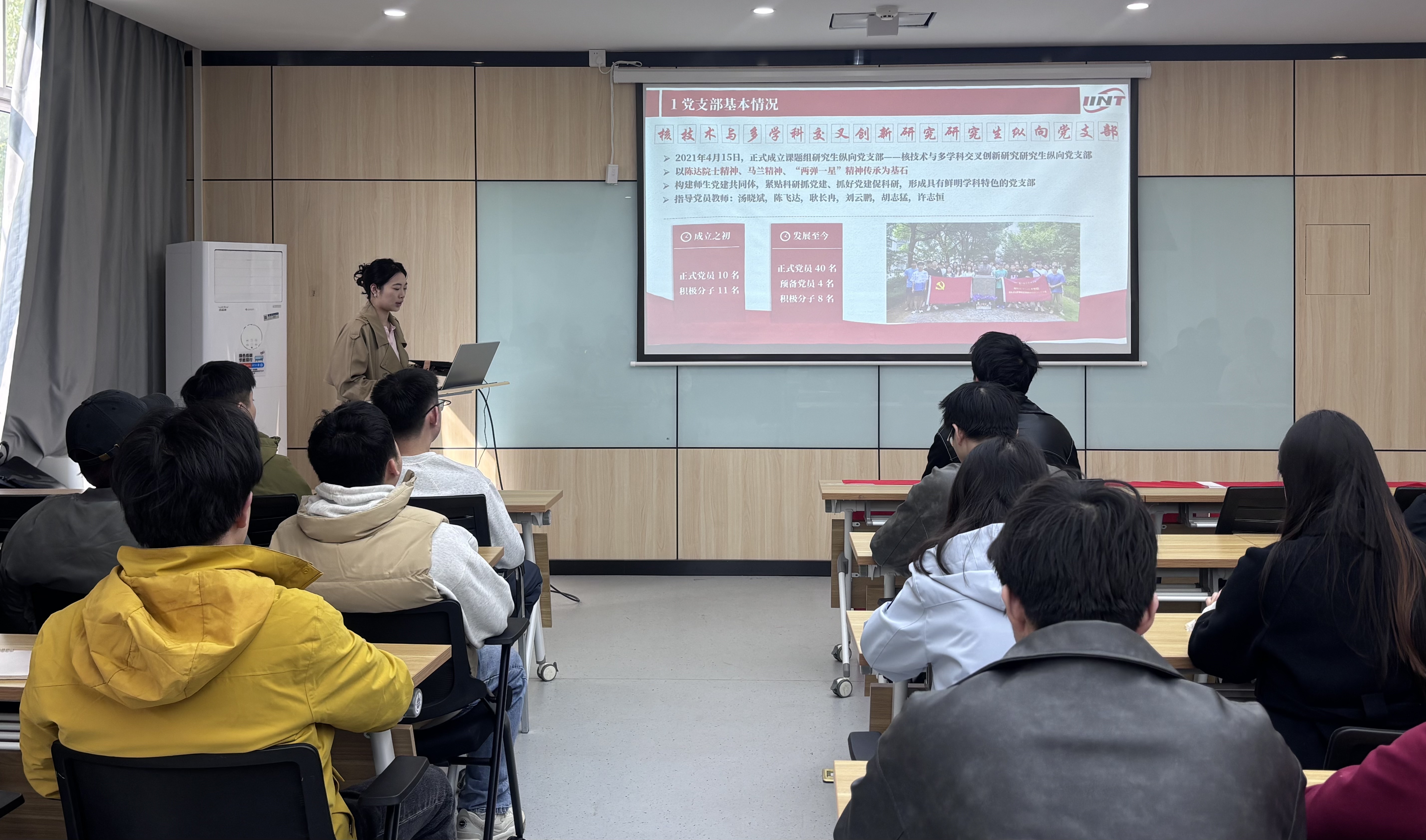 大会在庄严的国歌声中拉开序幕。全体参会人员肃立齐唱,铿锵旋律激荡初心使命。第一项议程由上一届党支部书记赵浠君同志代表上一届支委会汇报党纪学习教育情况以及2025年度工作情况,并聚焦过去一年中党支部存在的问题进行汇报,包括理论学习深度不足、组织生活形式创新不够、党员先锋作用发挥不充分等方面。