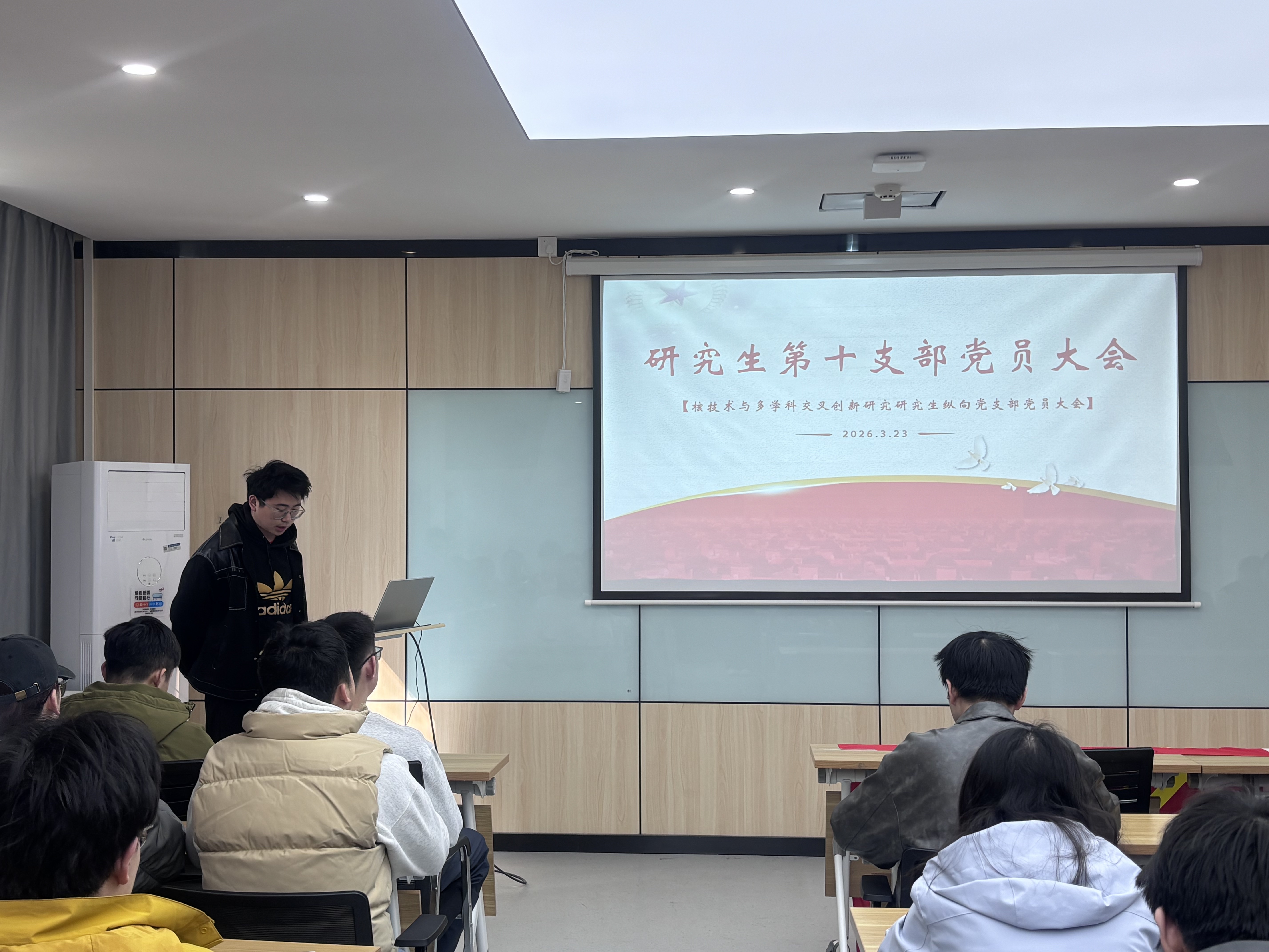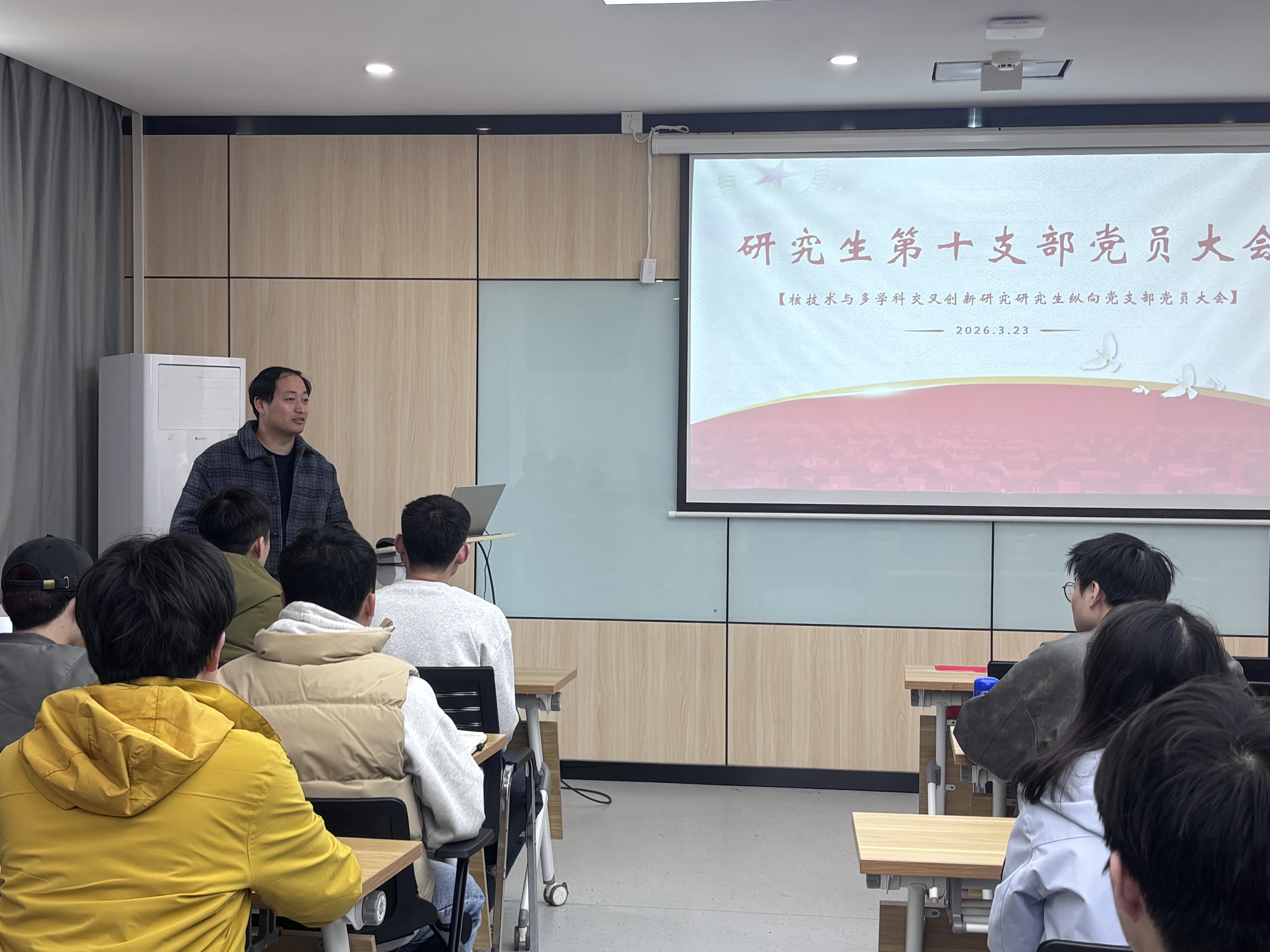 2026年3月23日,核心党支部于核化楼201会议室召开党员大会。会议由党支部副书记刘尧扬主持,并特邀学院院长助理耿长冉教授参加进行指导。