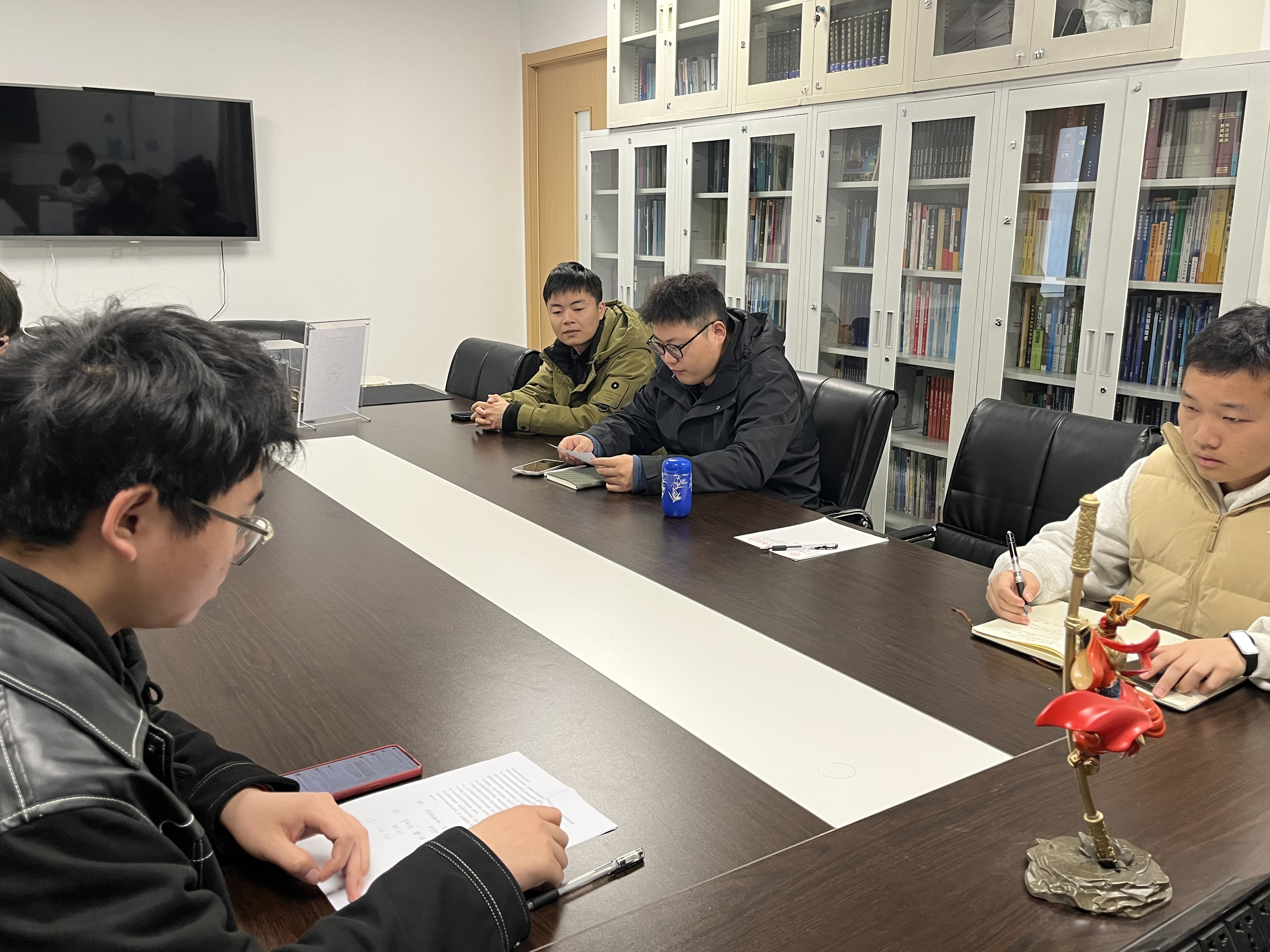 核化楼201会议室,由徐天成同志主持,徐天成同志特别针对大家普遍存在的办事拖拉、执行力不强的情况进行批评,并结合自身经历分享宝贵经验,强调今日事今日毕的工作作风和制定计划、及时反馈的重要性。
